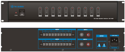 2路輸入(A和B),10通道輸出,有強(qiáng)行插入功能70V/100V音頻信號(hào)