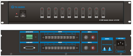 2路輸入(A和B),10通道輸出,有強行插入功能70V/100V音頻信號