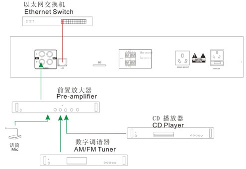 1路線路輸入、1路線路輸出、1路話筒輸入