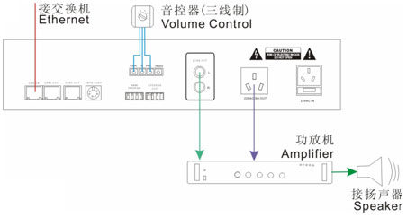 機柜安裝,用于將網(wǎng)絡音頻轉(zhuǎn)換為模擬音頻送至功放。