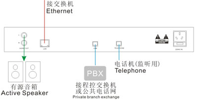 接入模擬電話交換機(jī),能電話接入網(wǎng)絡(luò)進(jìn)行廣播,擴(kuò)展通信范圍.