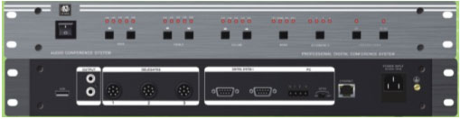 系統(tǒng)主機(jī)最多可連接128臺(tái)發(fā)言單元,通過(guò)擴(kuò)展電源接入4096臺(tái)發(fā)言單元,且相互無(wú)干擾。