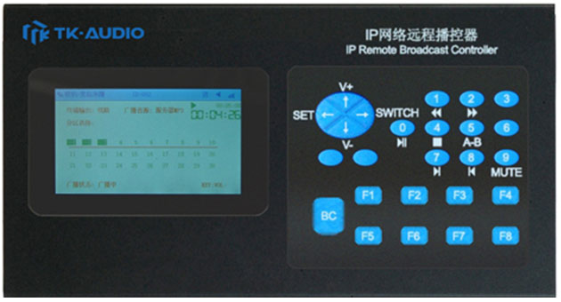 3.通過網(wǎng)絡(luò)對其他IP音頻終端遠(yuǎn)程播放(分區(qū)或全區(qū)), 播音音量可調(diào)節(jié);