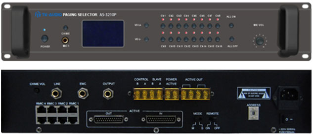 AS-3210P是一款用來進(jìn)行分區(qū)呼叫的設(shè)備,一般和分區(qū)器(AS-3213A)配合使用,它可以對16個廣播分區(qū)進(jìn)行呼叫當(dāng)進(jìn)行分區(qū)呼叫時只有選取的分區(qū)播放呼叫音樂,其它分區(qū)正常播放背景音樂,不受影響,還可以連接尋呼麥克風(fēng)實現(xiàn)遠(yuǎn)距離選區(qū)呼叫功能,每臺設(shè)備最多可接4臺尋呼麥克風(fēng)。